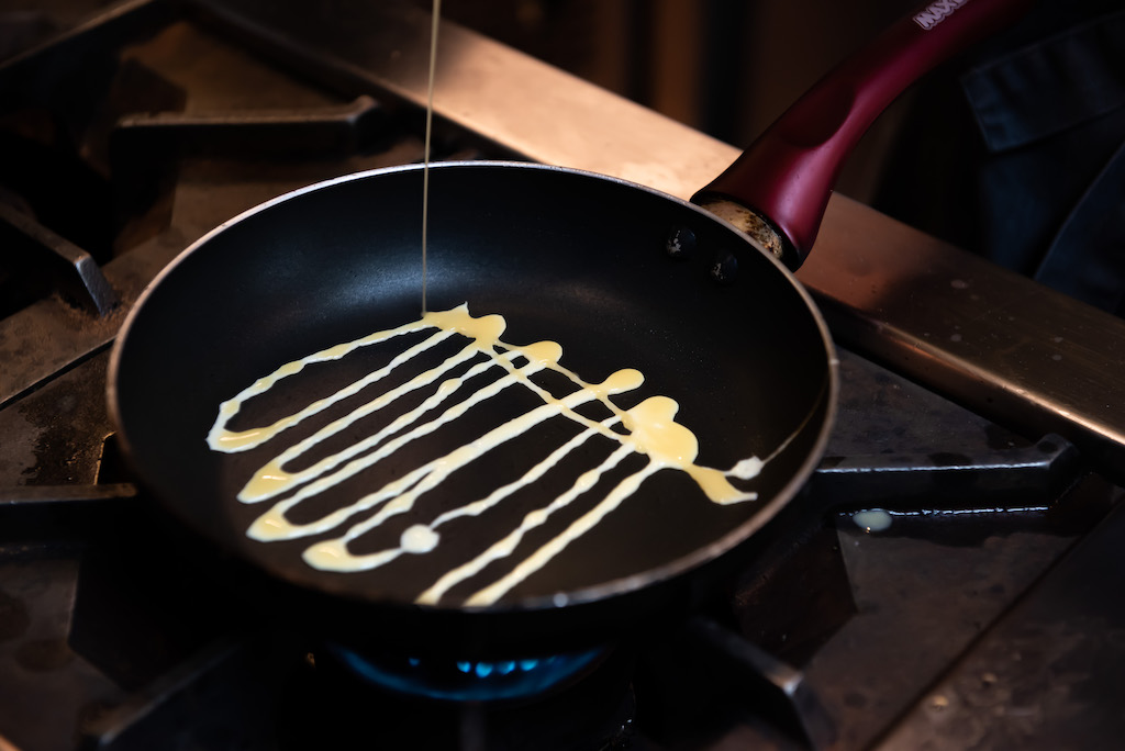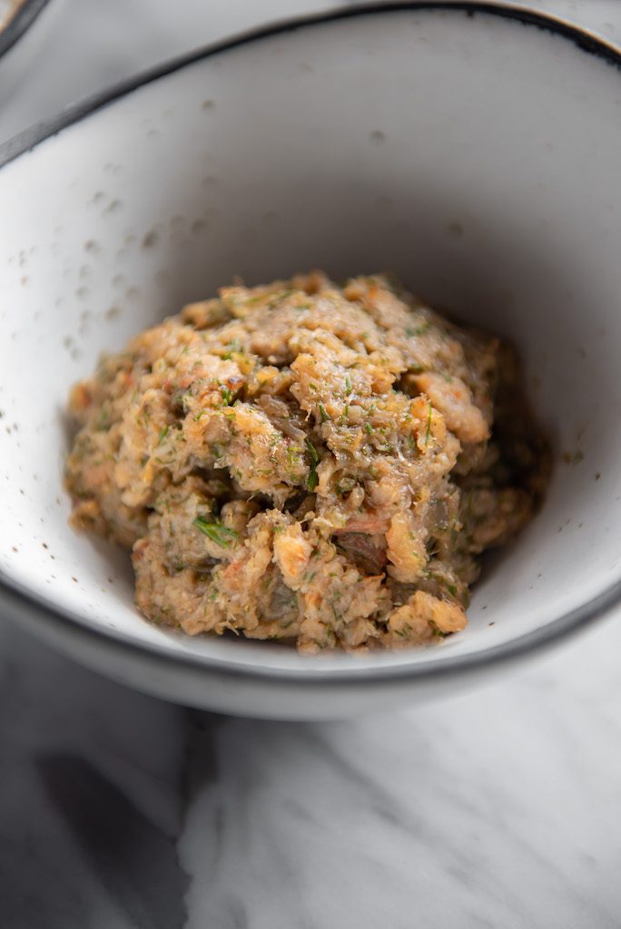 After washing and cooking the rice for seven minutes, we remove it from the water and scrub it in the strainer to remove any glutinous flour around it. The rice is then steamed for another 10 minutes for a grainy, not-too-creamy mouthfeel that will refresh with every bite.
