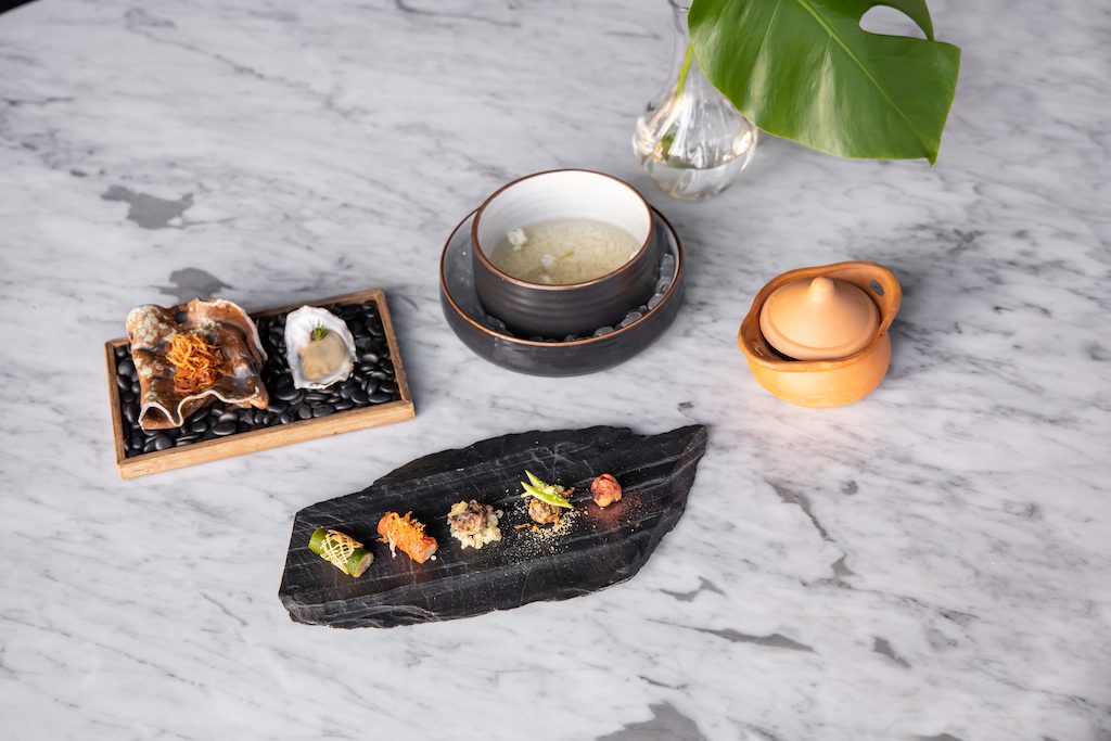 From lacto-fermented lychee bursting with umami to smoky Surat Thani oyster to aromatic Ranong lobster, Chef Thep crafts a khao chae journey devoted to blending the past and the present.